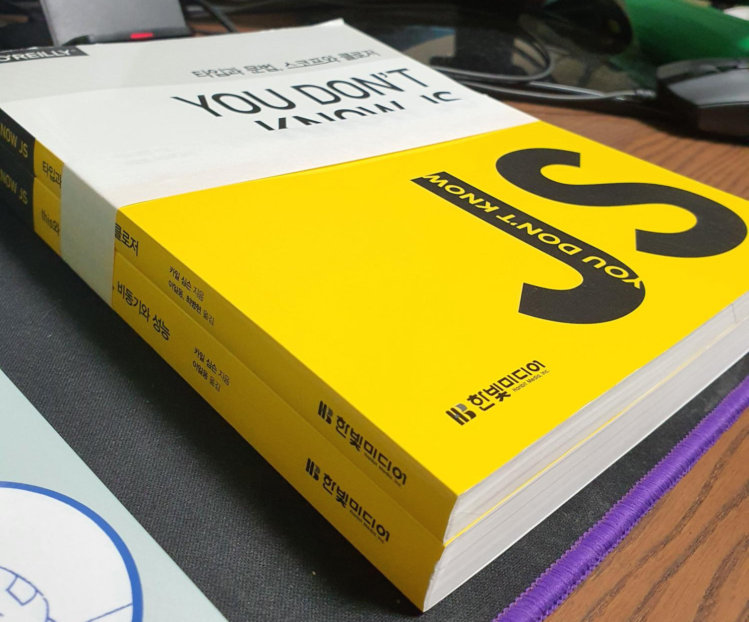 기존 리팩토링 스터디와는 별개로, 프론트 개발자를 지망하는 학부생 동아리원들과 모여 자바스크립트의 깊은(?) 내용을 함께 공부하기 위해 스터디 그룹을 만들어서 따로 진행하게 되었습니다. 스터디에 사용할 책은 You don't know JS 시리즈로 정하게 되었는데, 선배들의 추천도 있었고 전부터 눈여겨보고 있던 책이어서 망설임 없이 정하게 된 것 같네요.