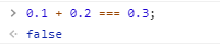 0.1 + 0.2 는 분명 0.3 인데도 불구하고, 콘솔은 false를 출력합니다. 간단히 말하면 부동 소수점으로 나타낸 0.1 과 0.2 는 실제 0.1, 0.2 와 일치하지 않기 때문에 발생하는 문제입니다.