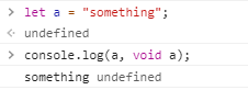 다음으로 살펴볼 것은 void입니다. 표현식 void는 모든 값을 undefined로 만들어버립니다. 기존 값에 영향을 미치지 않고 undefined를 출력시키고, 원본 값을 그대로 사용할 수 있다는 장점이 있지만 한번 undefined로 변경된 값은 다시 복구할 수는 없습니다.
