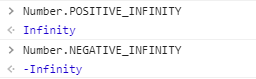 자바스크립트에는 무한대의 개념이 이미 정의되어 있습니다. 양의 무한대는 Number.POSITIVE_INFINITY, 음의 무한대는 Number.NEGATIVE_INFINITY로 확인할 수 있습니다.