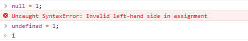 우선 타입과 값이 같은 경우입니다. undefined와 null은 타입이자 값 그 자체입니다. 여기서 null은 식별자가 아닌 키워드이므로 어떤 의미로 정의하여 사용하는지는 개발자의 마음이지만, null 이외의 값을 할당할 수는 없습니다. 그러나 undefined는 식별자이므로 임의의 값을 할당할 수 있습니다.