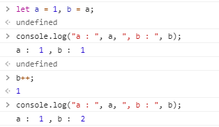 b는 a의 값을 복사하였으므로 이후의 b++; 구문은 a의 값에 영향을 미치지 않습니다.