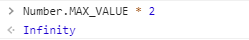 정의된 프로퍼티를 사용하지 않고 직접적인 계산을 통해서도 무한대에 도달할 수 있습니다. 수학적인 사고로는 불가능하지만, 자바스크립트는 유한 숫자 표현식을 사용하기 때문에 이런식으로 큰 수를 더하거나 곱해주면 무한대가 됩니다.