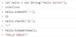 위에서 생성한건 일반적인 String 객체 래퍼이지만, String 으로부터 프로토타입 위임을 받은 덕분에 이러한 프로토타입 메소드들을 사용할 수 있게 됩니다.