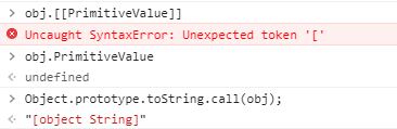 위에서 만들었던 obj가 문자열 객체 래퍼였으므로 String으로 표시되었고, 저 자리에 문자열 대신 배열이 들어갔다면 [object array], 정규식이라면 [object RegExp] 의 모양으로 출력됩니다.