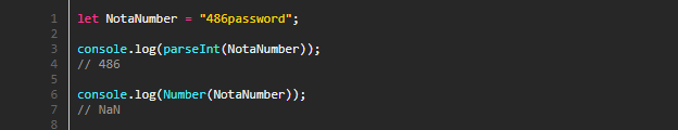 예시 코드의 변수명을 보고 이미 직감하신 분도 계시겠지만 파싱의 경우 숫자가 아닌 문자를 만나면 그 자리에서 변환을 중단하고 결과값을 반환하는 반면, 타입변환은 단 하나의 숫자가 아닌 문자도 허용하지 않고 NaN을 반환하는 모습입니다.