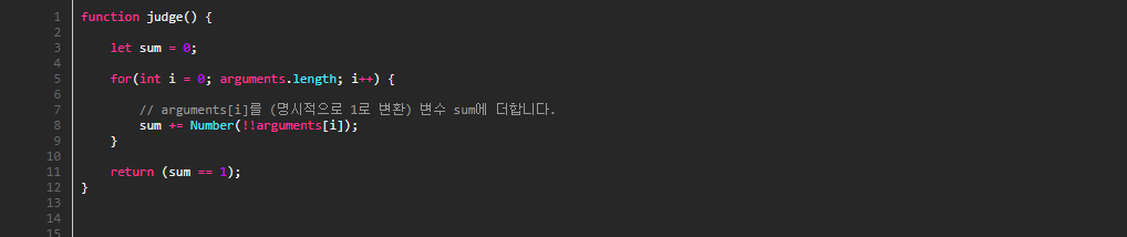 변수 sum에 arguments[i]를 더해주는 부분을 명시적으로 나타내면 아래와 같습니다.