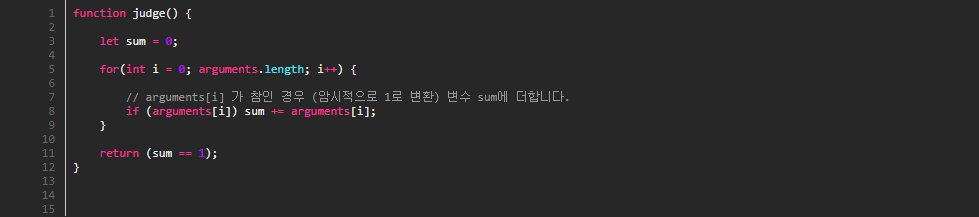 변수 sum에 arguments[i]를 더해주는 부분을 명시적으로 나타내면 아래와 같습니다.