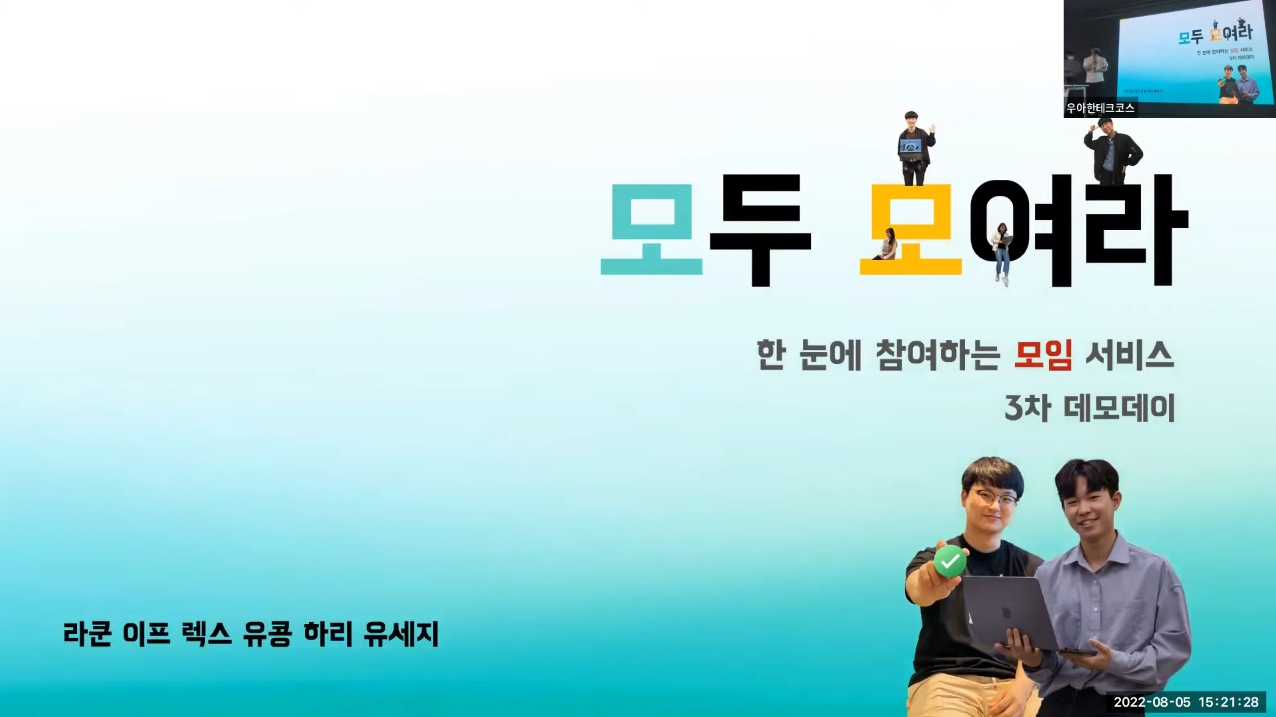 우아한테크코스 레벨 3 ~ 4에 거쳐 진행된 팀 프로젝트가 21일 데모데이를 끝으로 마무리 되었습니다. 제가 참여한 팀에서는 "모두 모여라"라는 모임 생성 & 참여 서비스를 개발하게 되었는데, 지난 네 달간의 개발 과정을 정리해보는 시간을 가지려고 합니다.