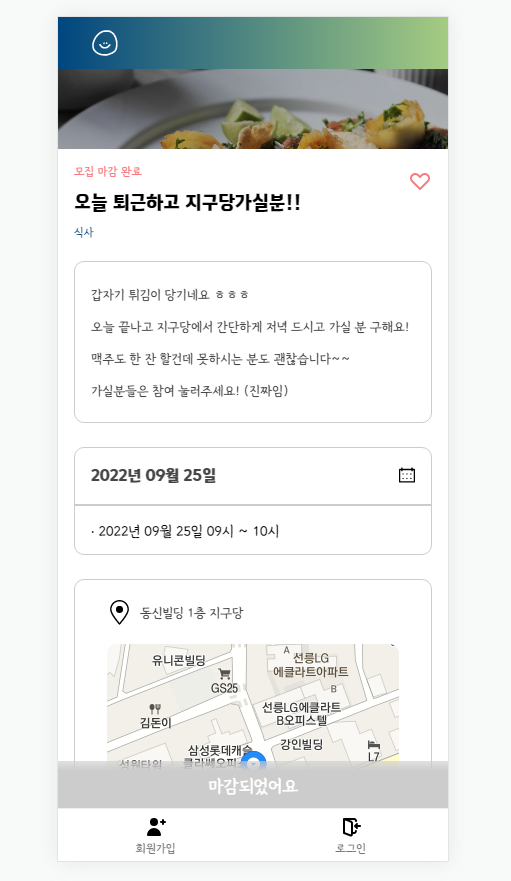 이러한 반-적응형 디자인은 모임 상세 페이지에 적용되어 있습니다.