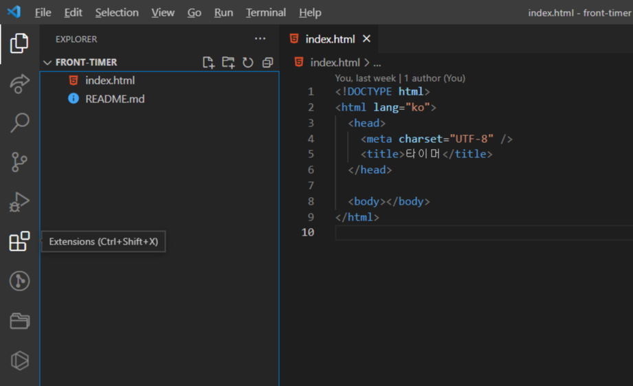 VSCode 기준 왼쪽 탭 메뉴에서 Extensions 메뉴를 찾습니다. 단축키는 윈도우 기준 [Ctrl + Shift + X], 맥 기준 [Cmd + Shift + X] 입니다.