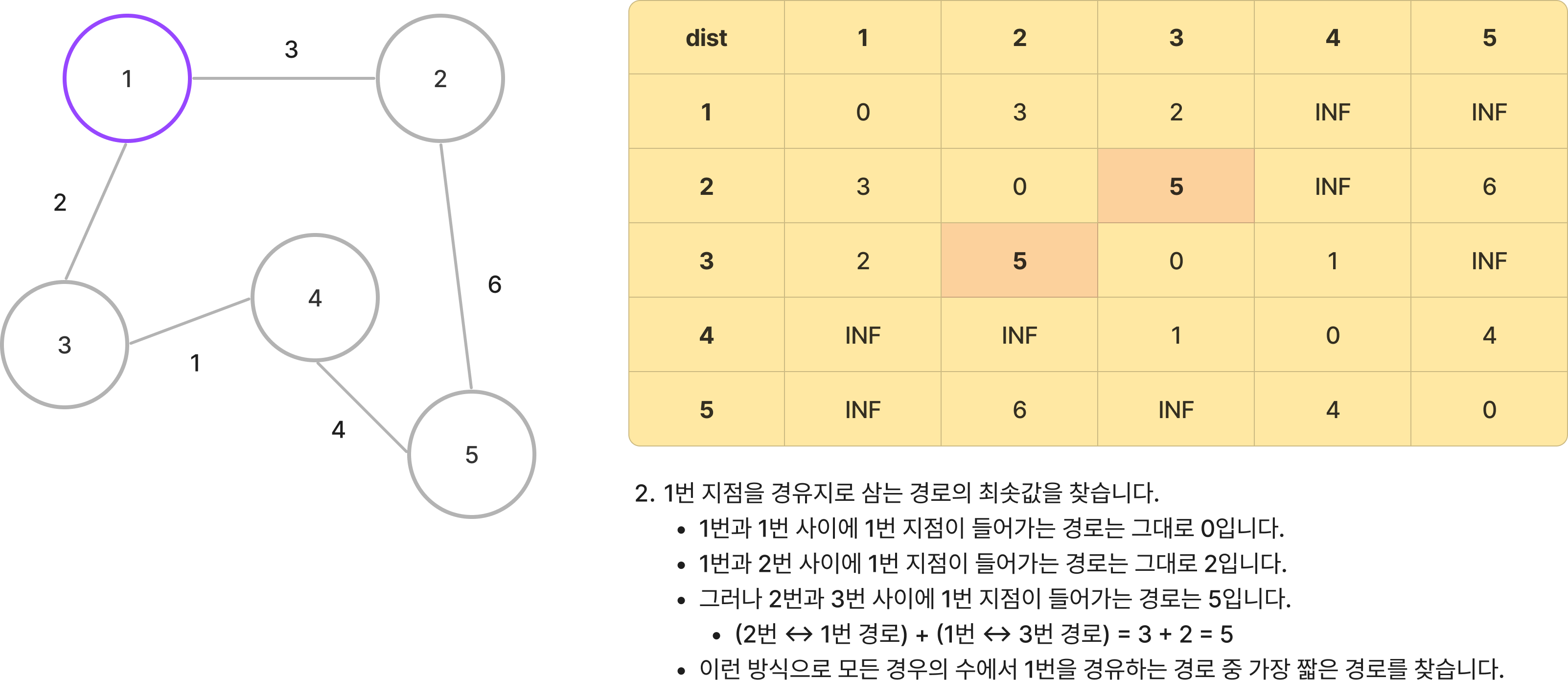 - 2번 -> 3번 경로의 길이 : 5