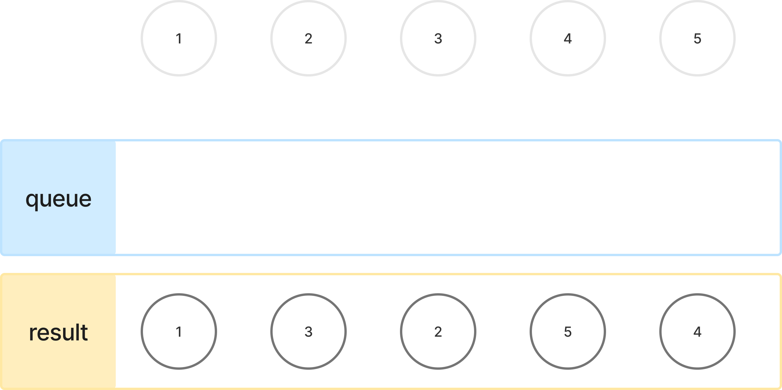 남은 정점 4를 큐에 추가하고, 그대로 방문하면 정렬이 마무리됩니다.