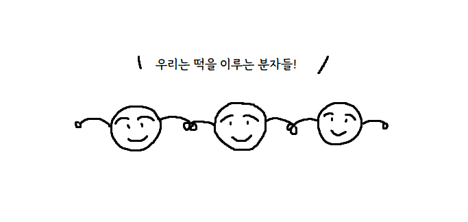 예를 들어, 이렇게 가래떡을 구성하는 분자들끼리 연결된 상태들은 변하지 않죠. 여전히 서로를 꽉 붙잡고 있습니다.