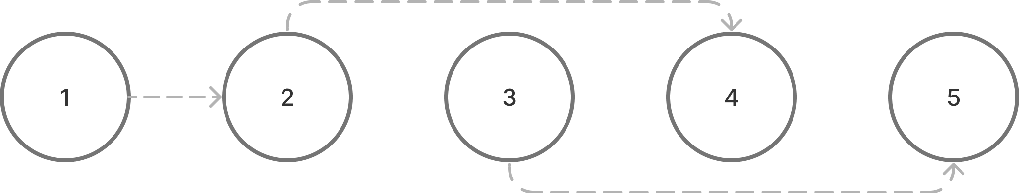 예시로 다섯개의 정점 1, 2, 3, 4, 5 가 있고, 이 요소들을 나열할때 아래 몇 가지 순서가 지켜져야 한다는 상황을 가정하겠습니다.