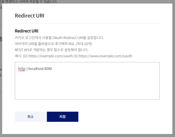 redirectUri: "http://localhost:8080/kakao",