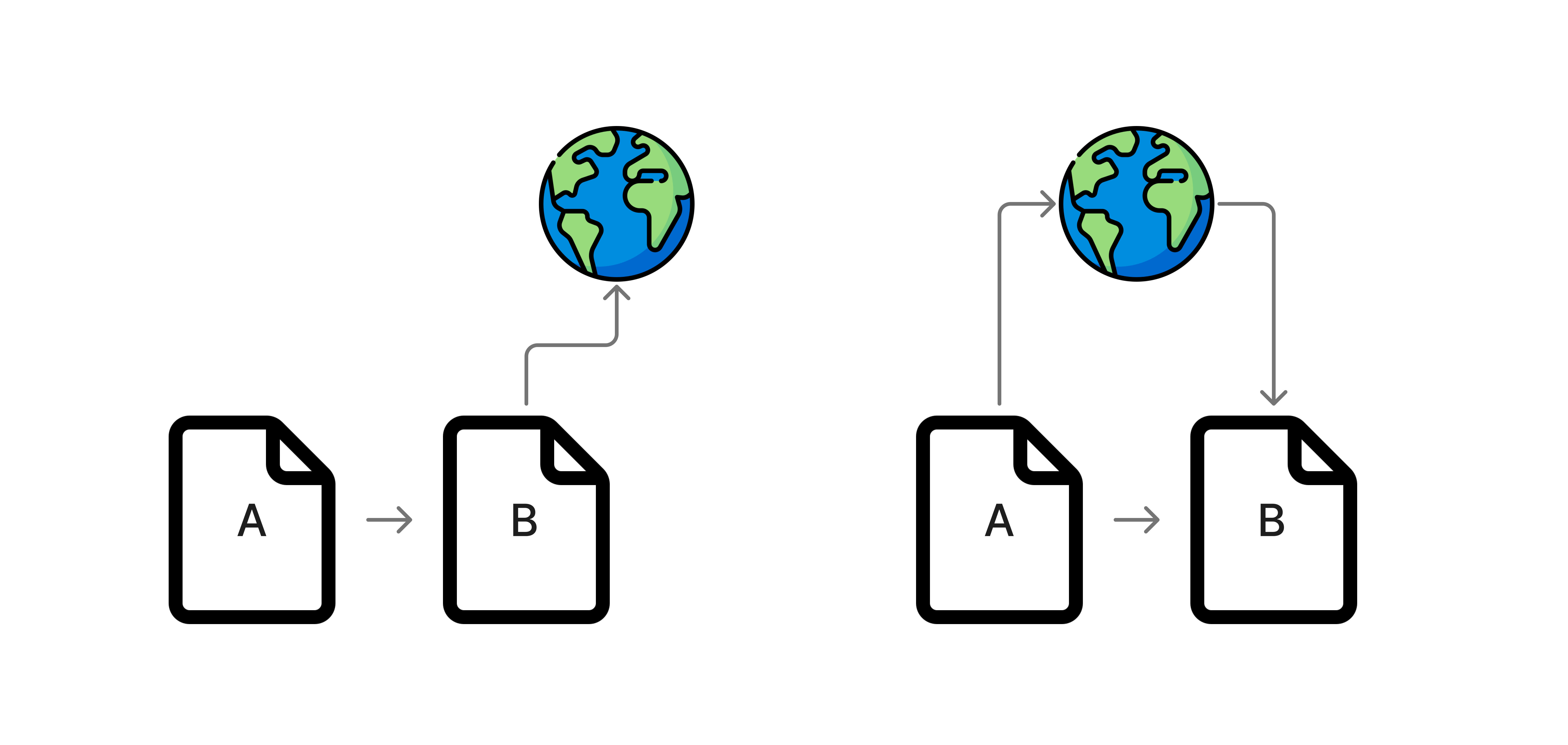 글 목록 역할을 하는 "페이지 A" 에서 글 상세의 역할을 하는 "페이지 B"로 이동하는 버튼을 클릭한 경우를 보겠습니다.