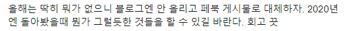회고록이라는 것 자체를 깜빡 잊고 지내던터라 2020년이 오기 전에 올리는 것은 실패했다. 내년에는 꼭 해가 넘어가기 전에 작성해야겠다.